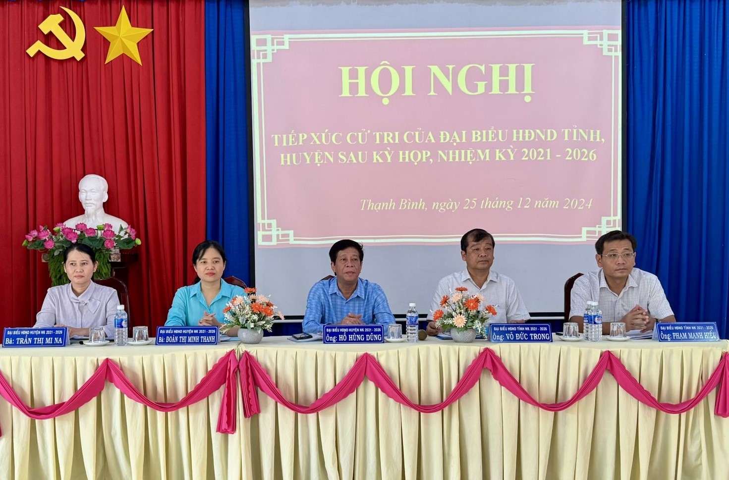 Tại xã Thạnh Bình, cử tri đề xuất chính quyền cần có giải pháp xử lý tình trạng xe tải trọng lớn lưu thông trên các tuyến đường giao thông nông thôn, gây ảnh hưởng đến kết cấu hạ tầng; cử tri cũng phản ánh tình trạng ô nhiễm môi trường do một lò mì trên địa bàn ấp Thạnh An xả thải ra ngoài; đoạn đường 795 (Tân Biên – Tân Châu), đặc biệt là khu vực cua chữ S (ấp Thạnh Hòa), đã hoàn thành nhưng vẫn chưa được lắp đèn chiếu sáng; tình trạng tội phạm ngày càng tinh vi và trẻ hóa, làm ảnh hưởng đến tình hình an ninh trật tự địa phương.