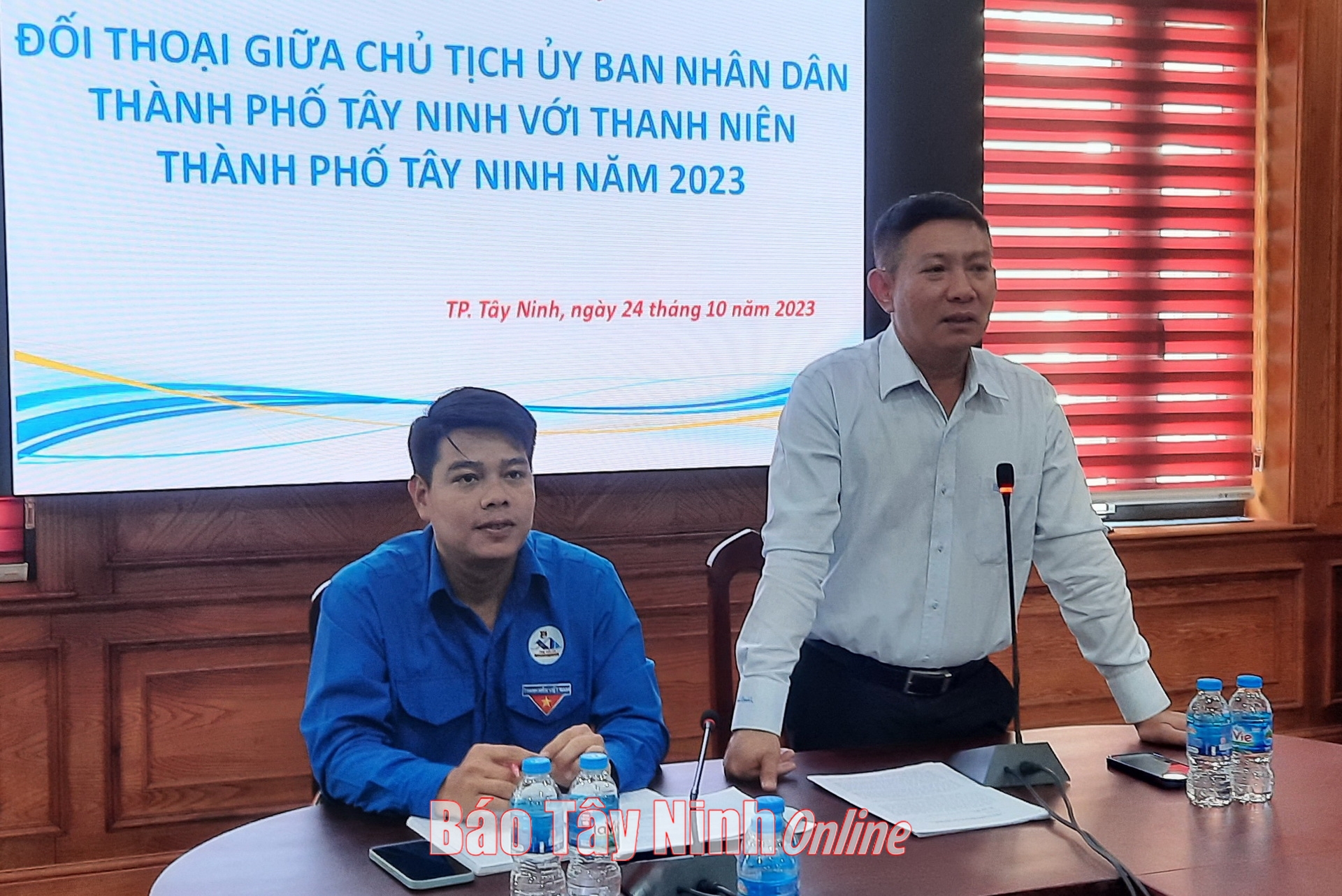 Ông Phạm Trung Chánh- Chủ tịch UBND Thành phố, anh Lê Tấn Phát- Bí thư Đoàn Thanh niên Cộng sản Hồ Chí Minh thành phố đồng chủ trì hội nghị.