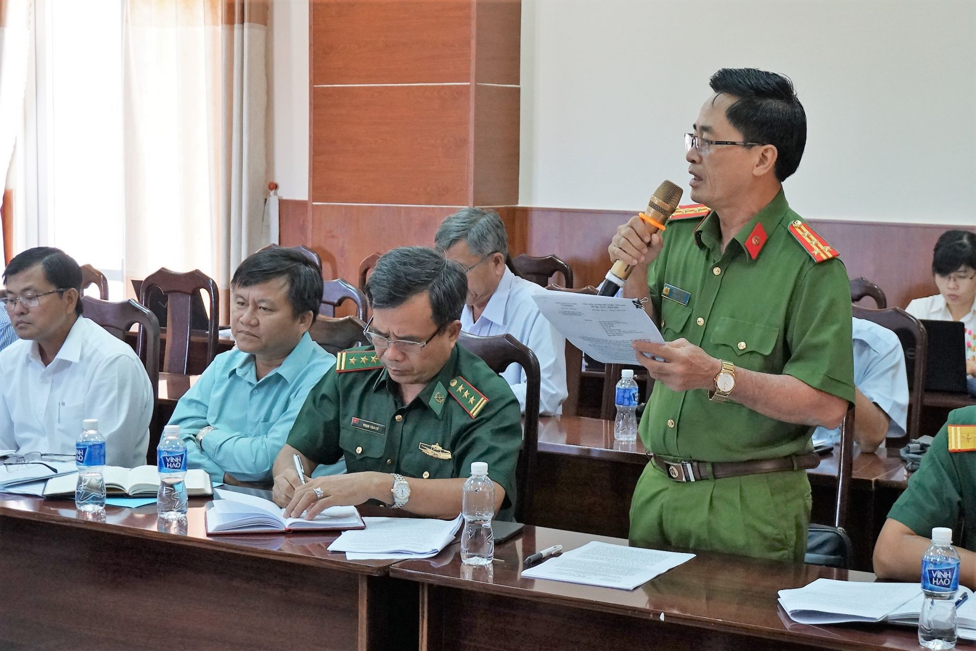 Đại tá Phạm Văn Cao- Phó Giám đốc Công an tỉnh phát biểu tại buổi làm việc.