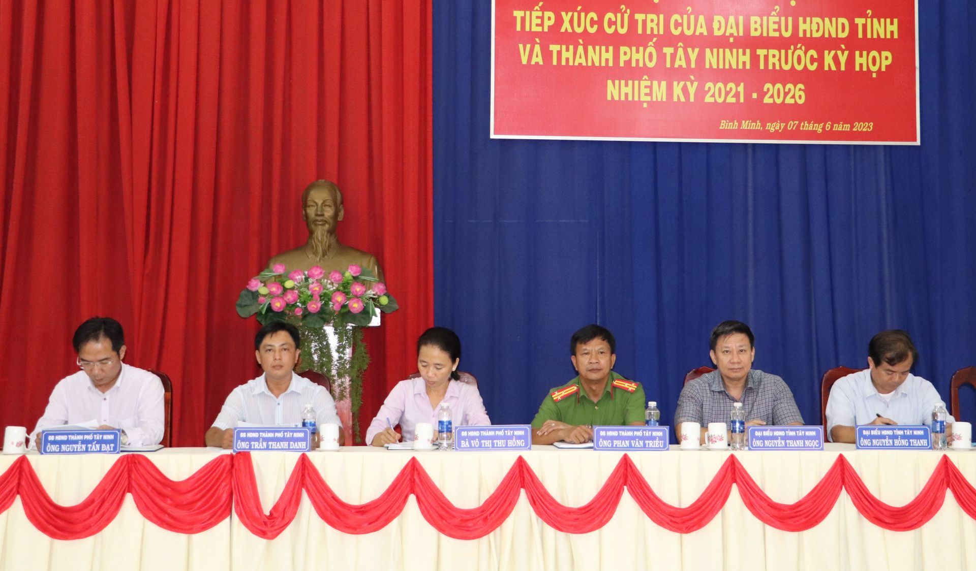 Tổ đại biểu HĐND hai cấp ghi nhận các ý kiến, nguyện vọng của cử tri; lãnh đạo UBND xã Bình Minh, UBND thành phố đã trả lời các ý kiến của cử tri tại buổi tiếp xúc.