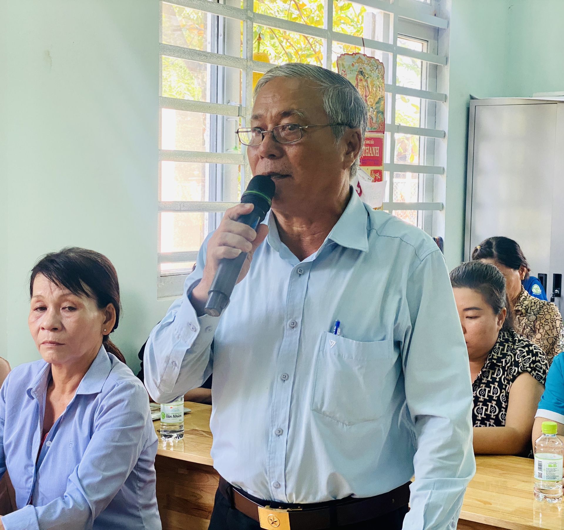 Cử tri xã Bình Bình Minh phát biểu tại buổi tiếp xúc.