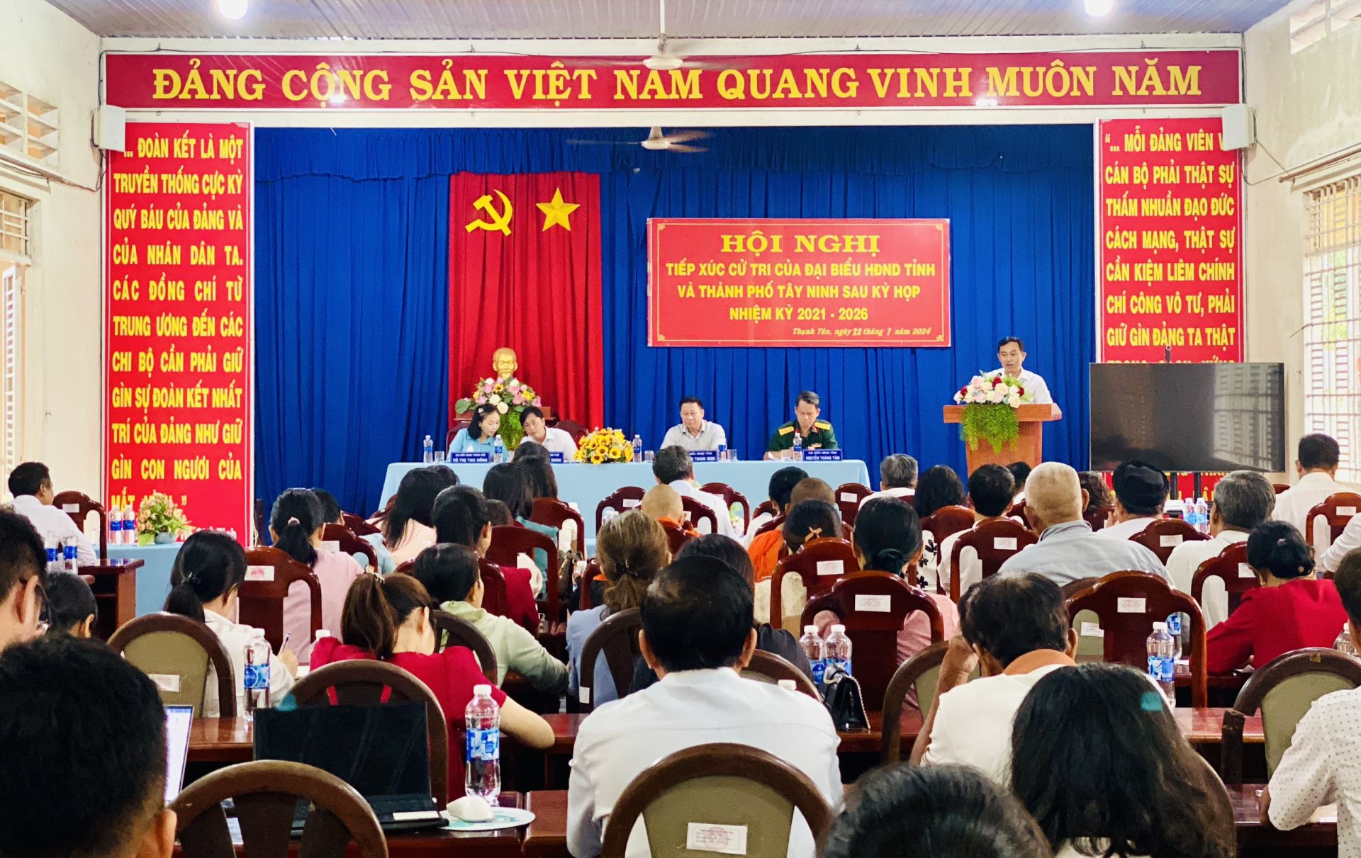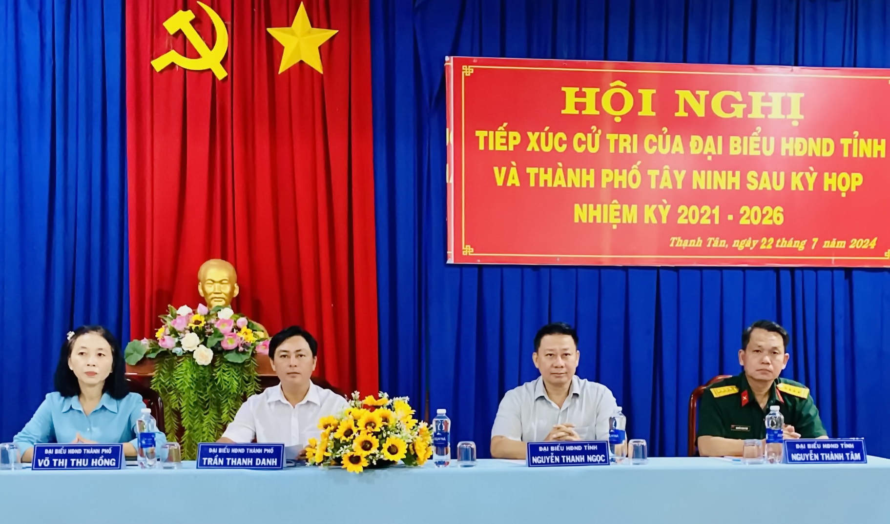 Sáng 22.7, ông Nguyễn Thanh Ngọc- Chủ tịch UBND tỉnh Tây Ninh, ông Nguyễn Thành Tâm - Phó Chỉ huy trưởng Bộ Chỉ huy Quân sự tỉnh cùng các đại biểu HĐND Thành phố có buổi tiếp xúc với cử tri xã Thạnh Tân, thành phố Tây Ninh sau kỳ họp thứ 14 HĐND tỉnh khoá X và sau kỳ họp thứ 11 HĐND Thành phố khoá XII, nhiệm kỳ 2021-2026.
