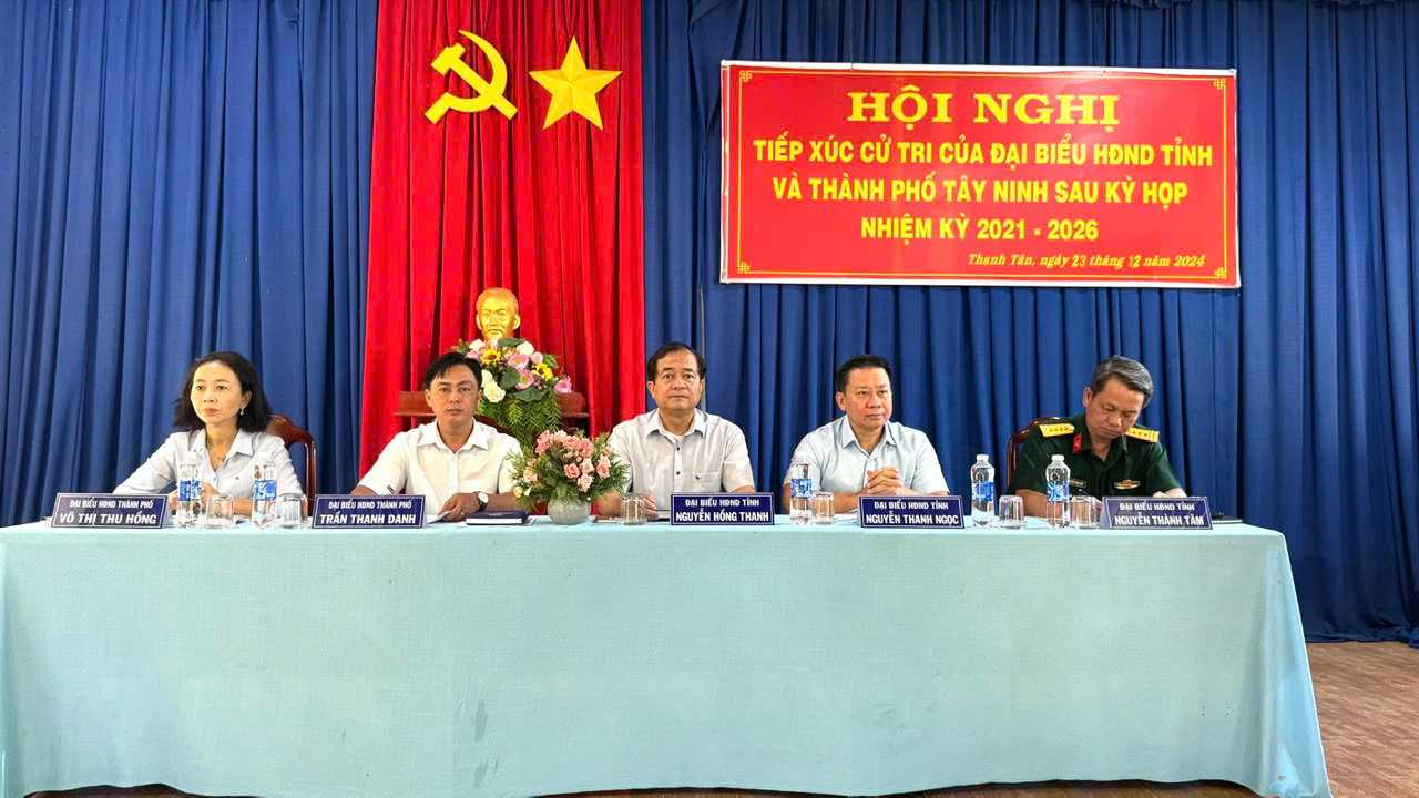Sáng 23.12, các đại biểu HĐND tỉnh gồm ông Nguyễn Thanh Ngọc- Chủ tịch UBND tỉnh; ông Nguyễn Hồng Thanh- Phó Chủ tịch Thường trực UBND tỉnh; ông Nguyễn Thành Tâm- Phó Chỉ huy trưởng Bộ Chỉ huy Quân sự tỉnh cùng tổ đại biểu HĐND thành phố Tây Ninh có buổi tiếp xúc với cử tri xã Thạnh Tân sau kỳ họp HĐND 2 cấp.