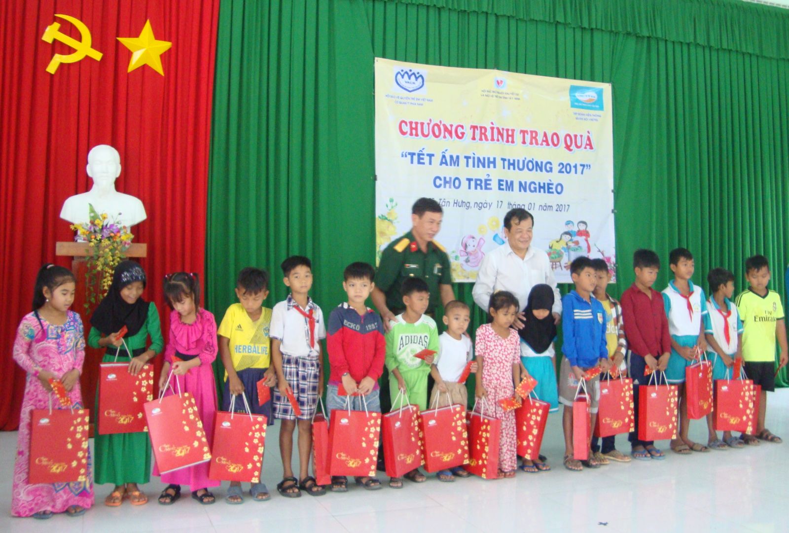 Ngày 17.1.2017, Hội Bảo vệ quyền trẻ em (cơ quan thường trực phía Nam) tổ chức tặng quà cho trẻ em nghèo, trẻ em dân tộc thiểu số có hoàn cảnh khó khăn trên địa bàn huyện Tân Châu.