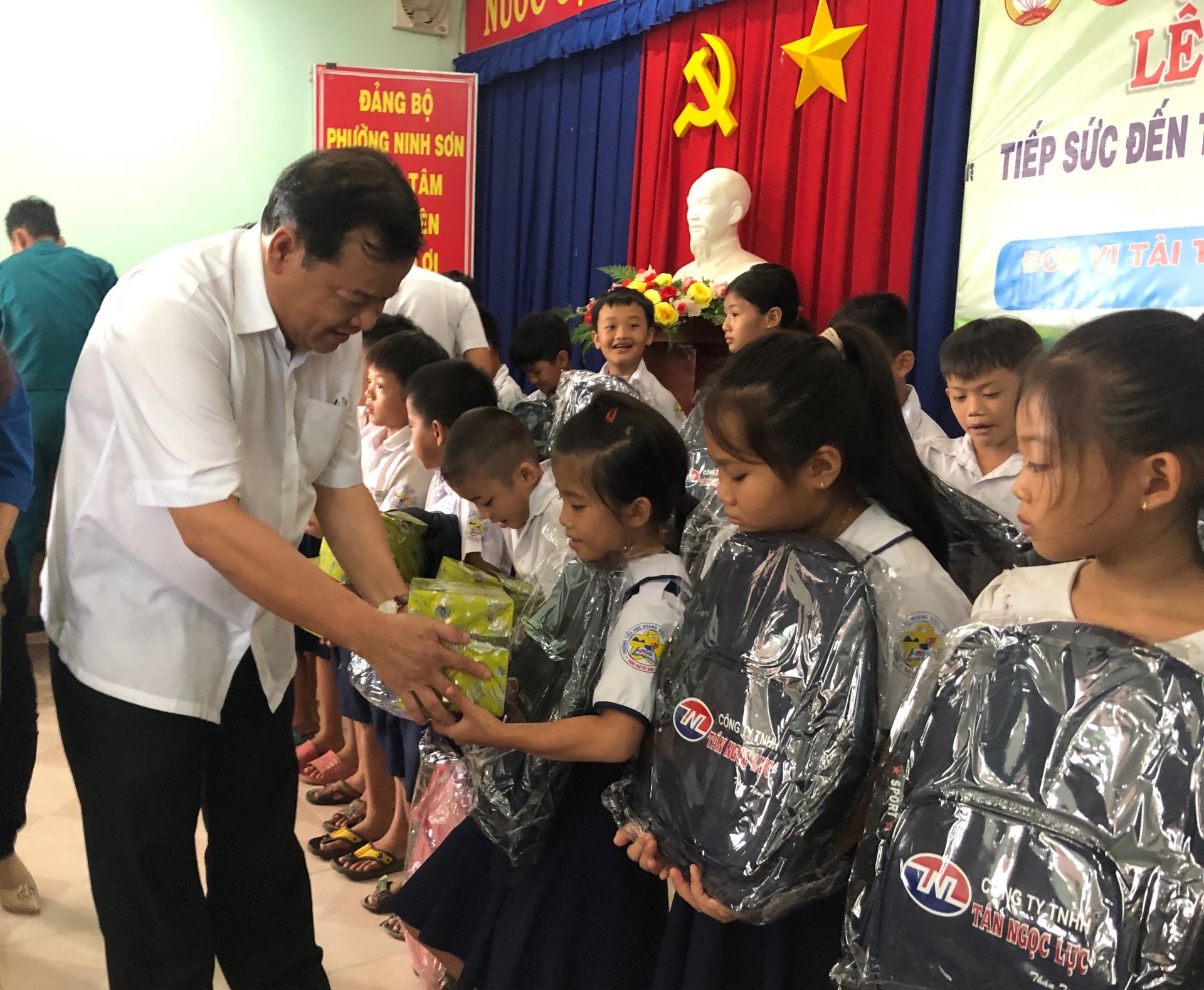 Chủ tịch UBND tỉnh Phạm Văn Tân trao tặng học bổng cho học sinh phường Ninh Sơn.
