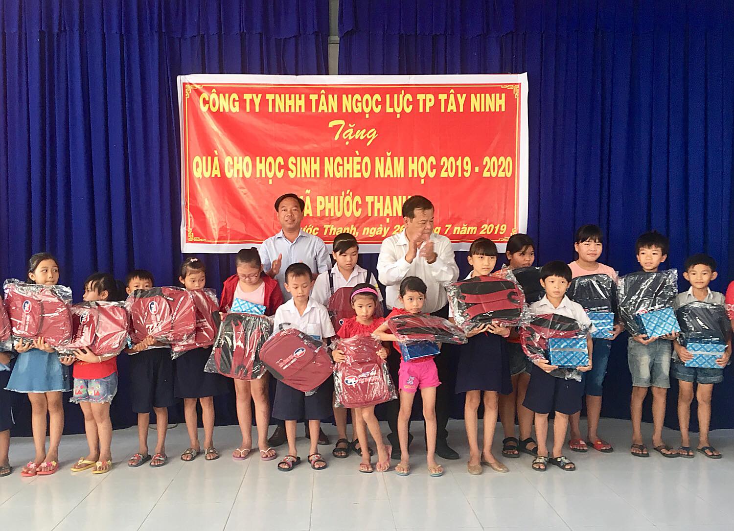 Đợt này, có 100 phần quà được trao cho các em học sinh có hoàn cảnh khó khăn, mỗi phần trị giá 500.000 đồng. Chi phí tặng quà do Công ty TNHH Tân Ngọc Lực (TP.Tây Ninh) tài trợ.