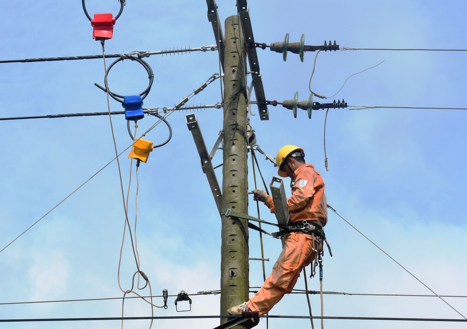 Nhân viên Điện lực thành phố Tây Ninh kiểm tra, nâng cấp lưới điện.