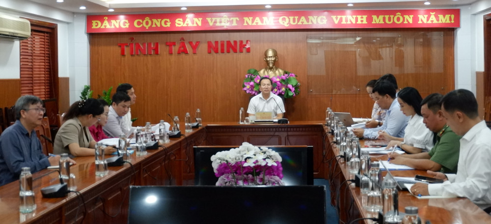 Ủy viên Ban Thường vụ Tỉnh ủy, Phó Chủ tịch UBND tỉnh Tây Ninh Đoàn Trung Kiên chủ trì cuộc họp. Tham dự có đại diện lãnh đạo các sở, ngành liên quan.