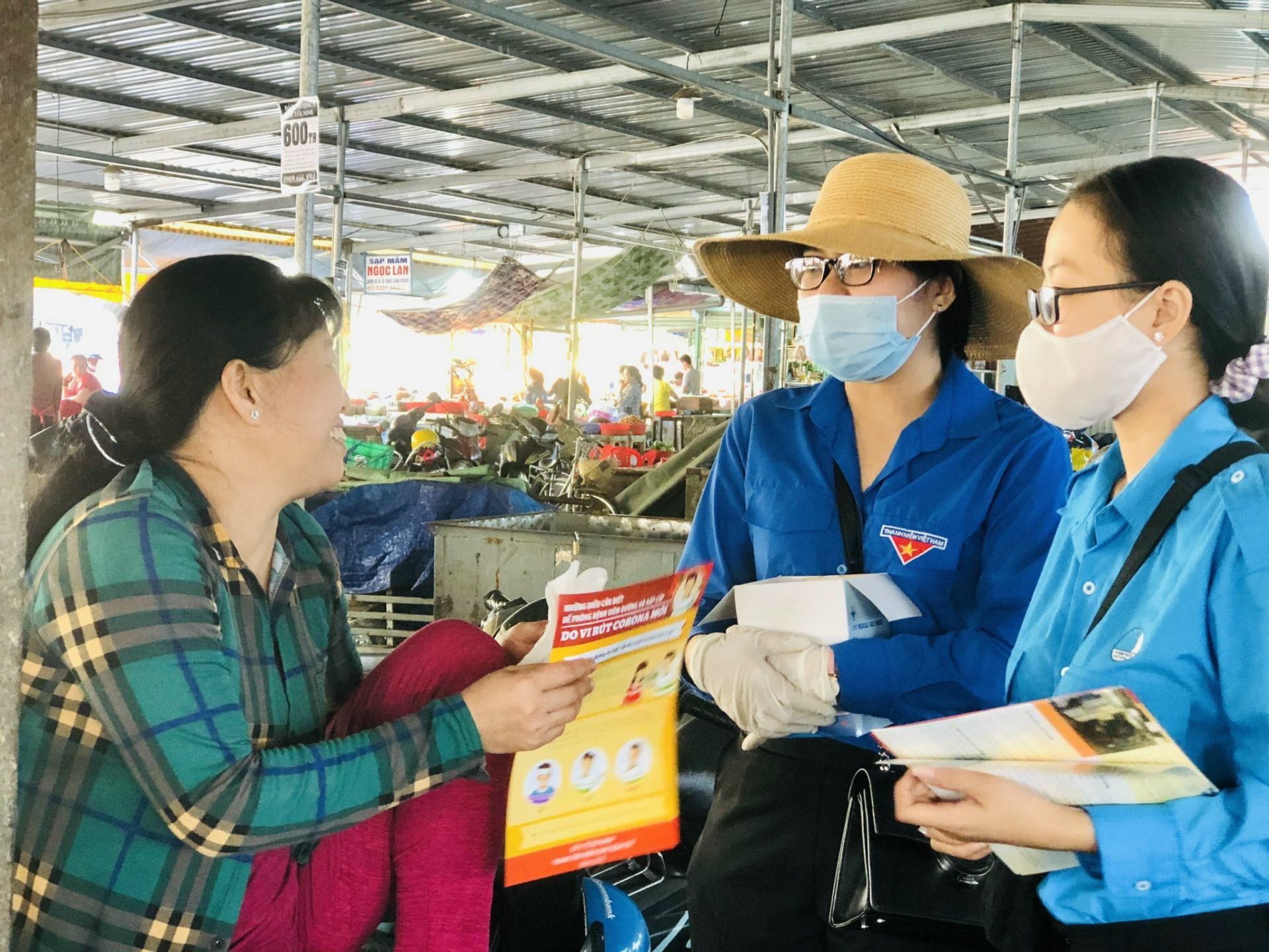 Phát tờ rơi tuyên truyền phòng, chống Covid-19 cho người dân.