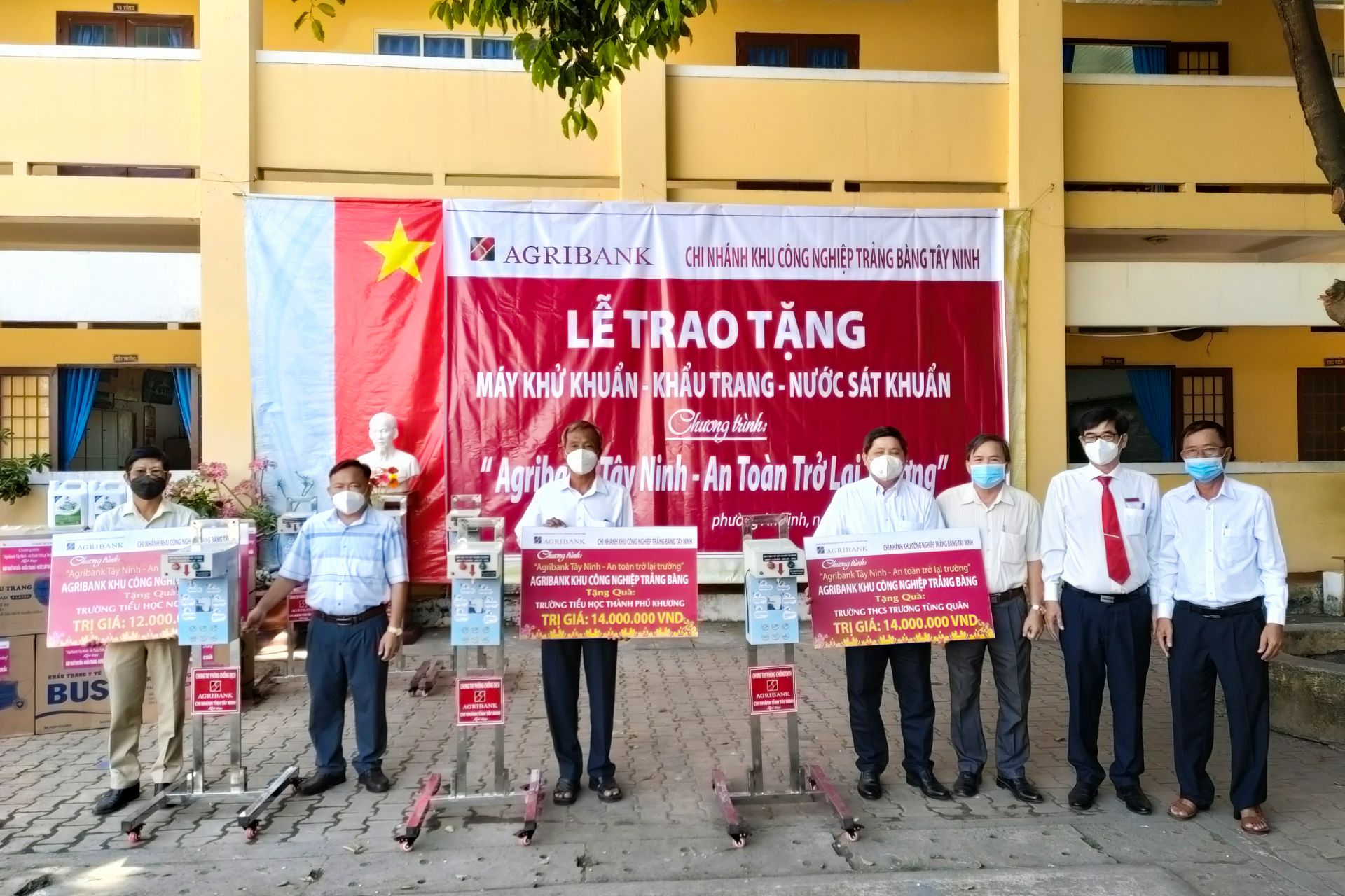 “Agribank Tây Ninh - An toàn trở lại trường” là một trong các chương trình nằm trong các hoạt động an sinh xã hội của hệ thống Agribank, nhằm tiếp sức cho các em học sinh an toàn khi trở lại trường học, góp phần chung tay cùng các địa phương thực hiện tốt công tác phòng, chống dịch Covid-19 theo chỉ đạo của Thủ tướng Chính phủ.