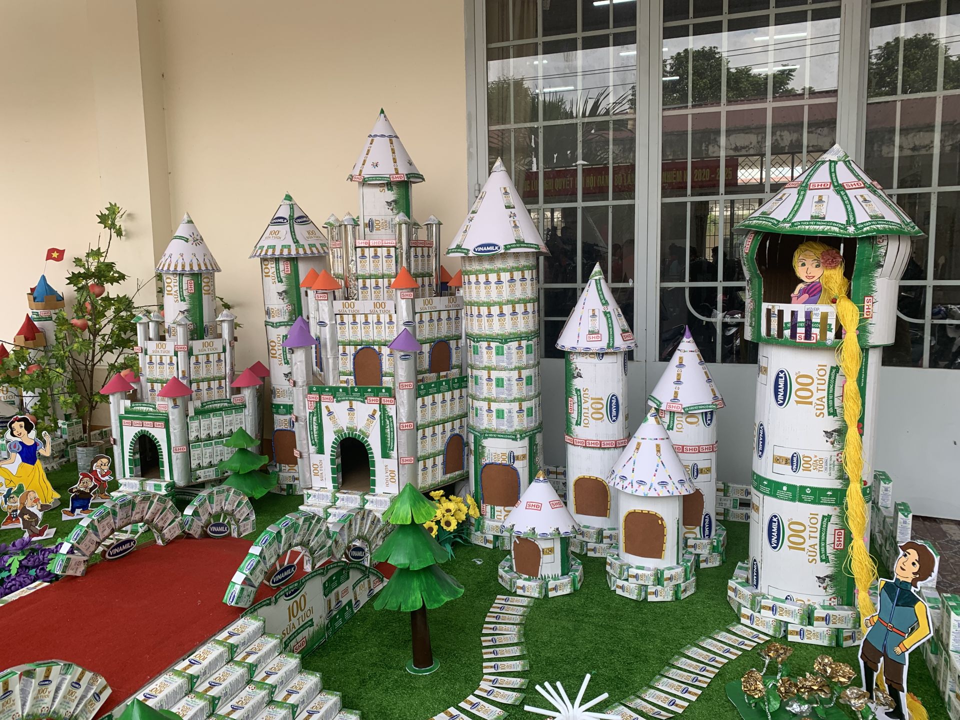 Một số mô hình làm từ vỏ hộp sữa- một cách để tuyên truyền về bảo vệ môi trường trong trường học.