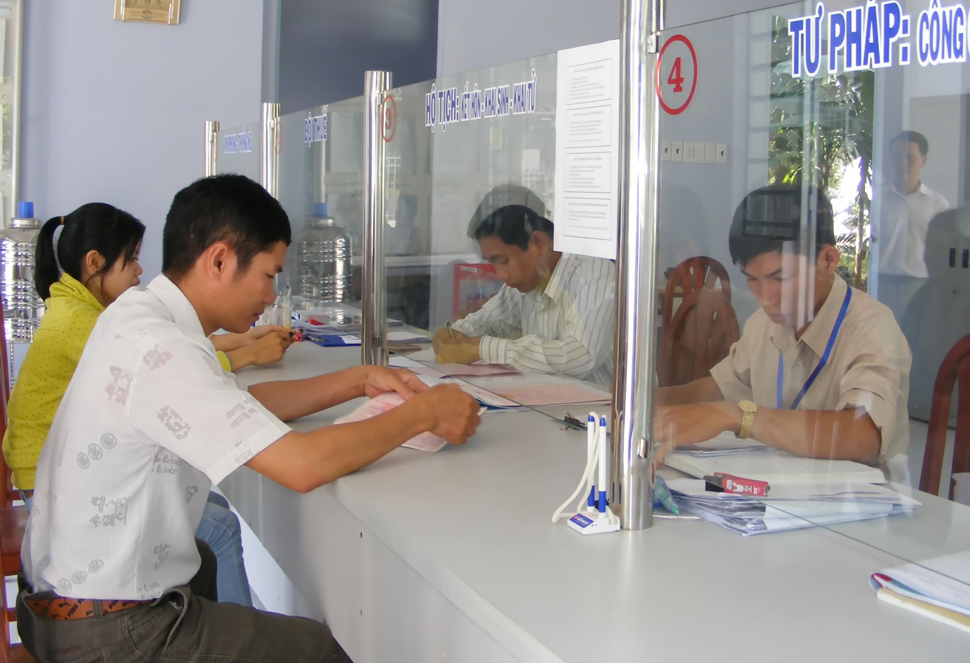 Giải quyết thủ tục hành chính cho người dân tại bộ phận Một cửa.