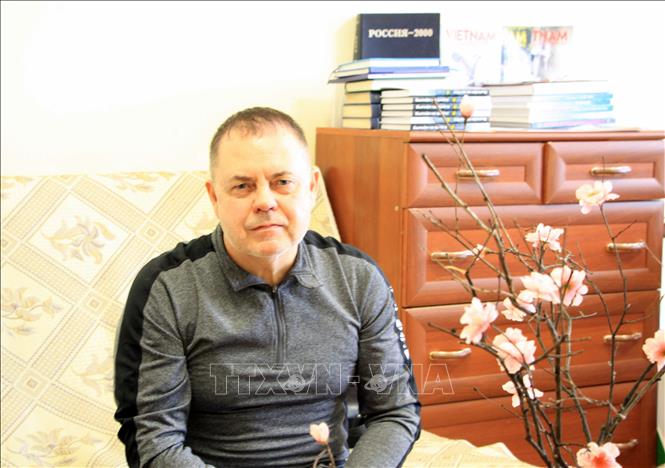 Chuyên gia Grigory Trofimchuk tại buổi trả lời phỏng vấn tại trụ sở CQTT TTXVN tại Moskva.