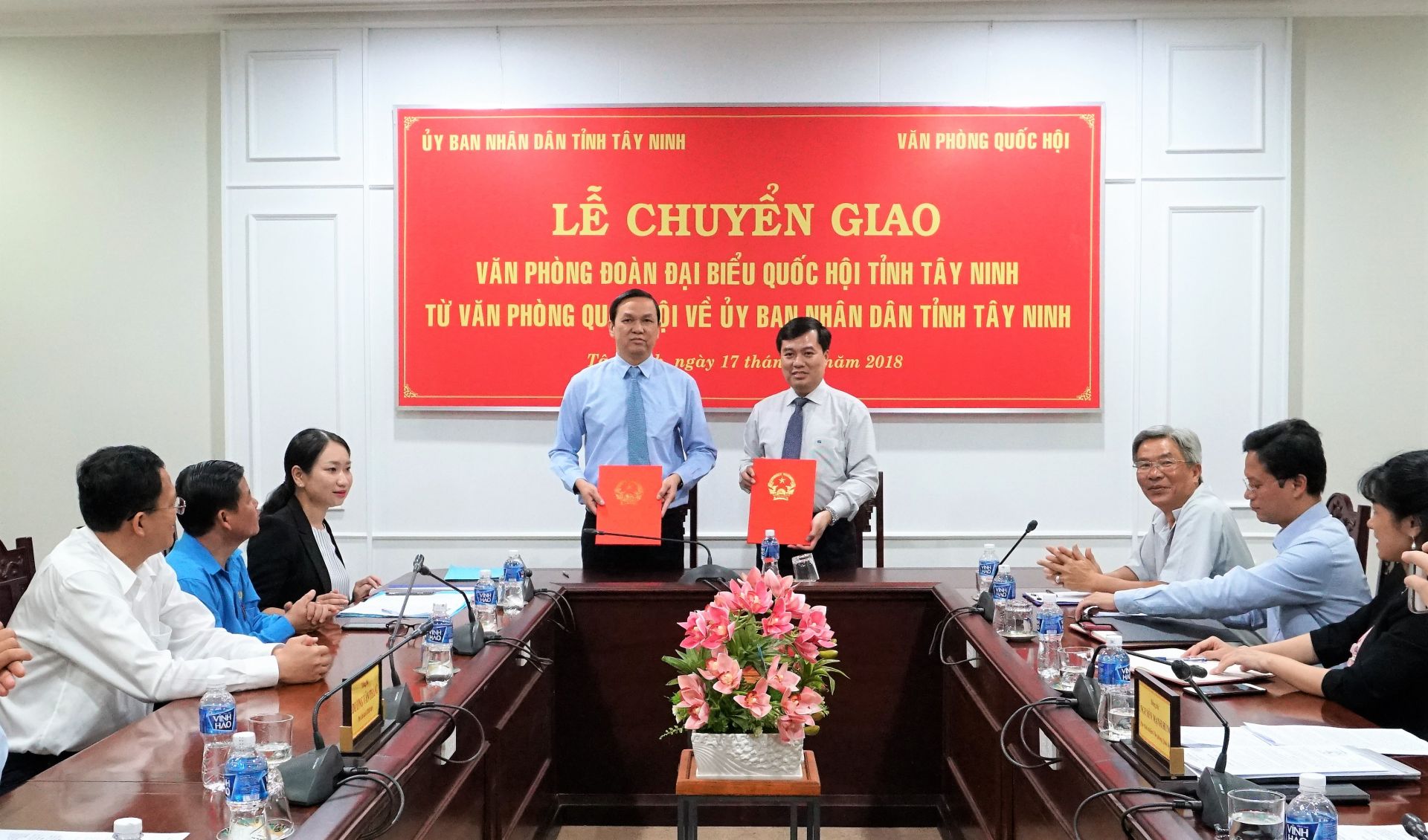 Tại buổi lễ, Phó Chủ tịch UBND tỉnh Dương Văn Thắng và Phó Chủ nhiệm Văn phòng Quốc hội Nguyễn Mạnh Hùng đã ký kết biên bản chuyển giao công chức, người lao động của Văn phòng Đoàn đại biểu Quốc hội tỉnh Tây Ninh về UBND tỉnh Tây Ninh. Phó Chủ tịch Liên đoàn Lao động tỉnh Dương Đại Lộc và Phó Chủ tịch Công đoàn cơ quan Văn phòng Quốc hội Bùi Lương Minh cũng ký biên bản chuyển giao tổ chức, đoàn viên công đoàn, tài chính công đoàn về Liên đoàn Lao động tỉnh.