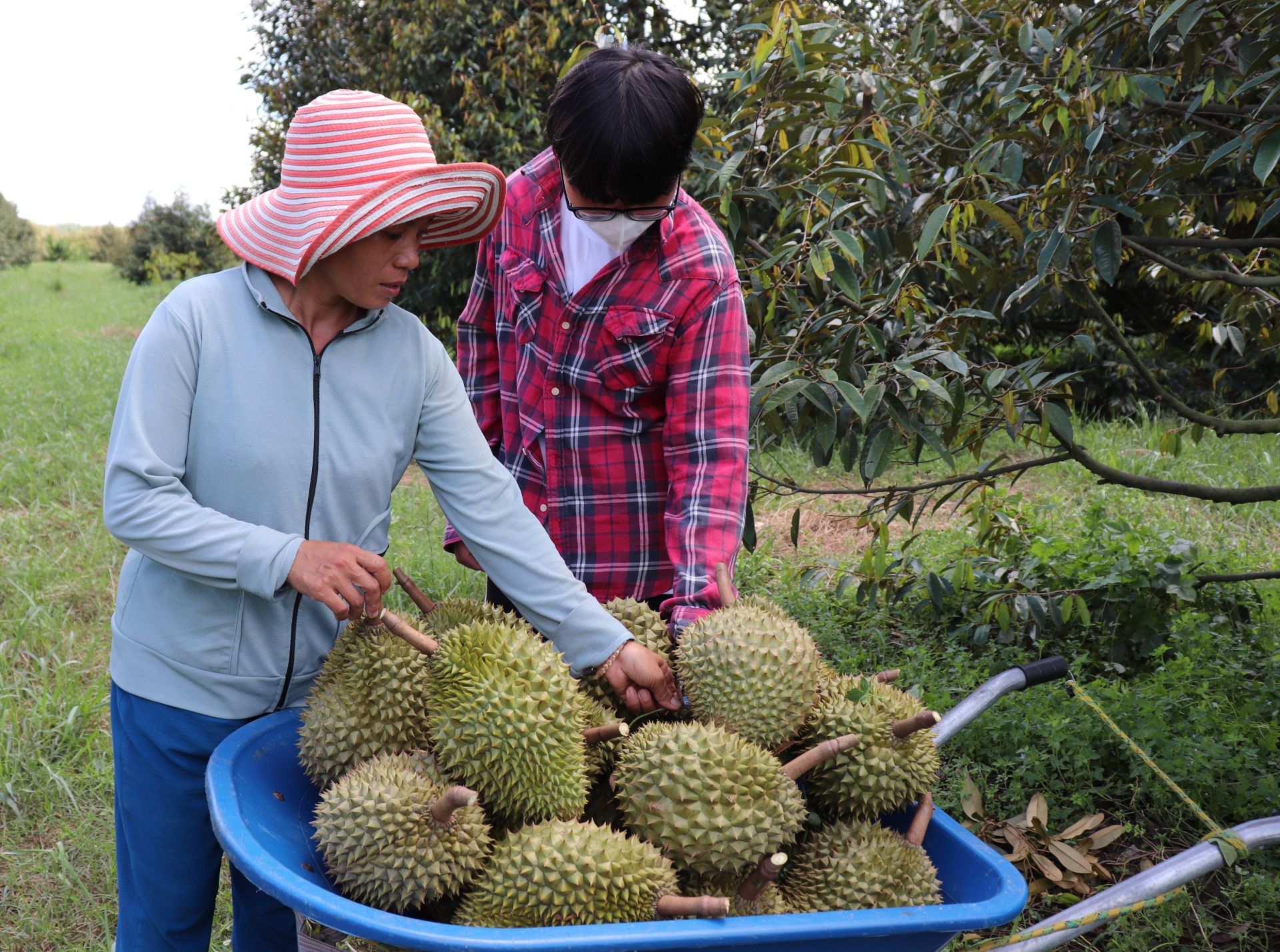 Thu hoạch sầu riêng tại xã Bàu Đồn, huyện Gò Dầu.