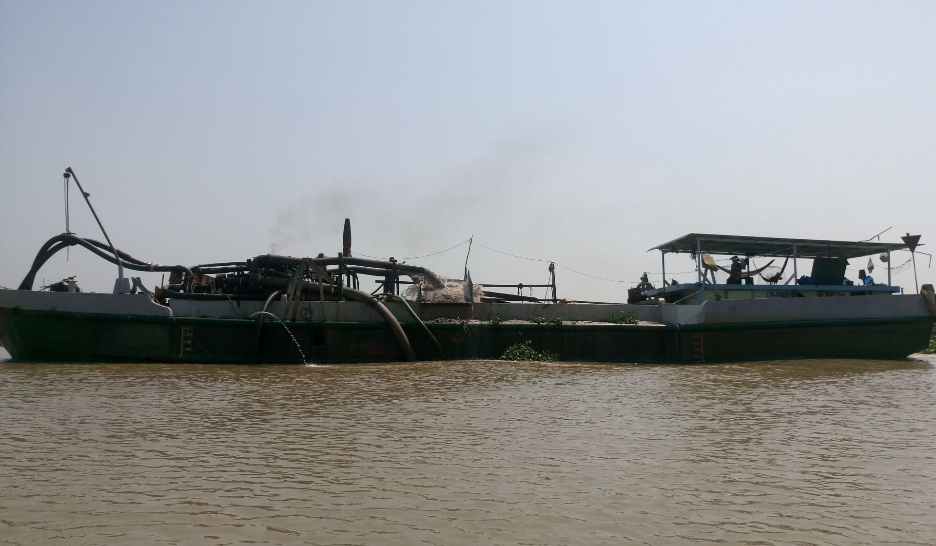 Tàu khai thác cát hoạt động trong hồ Dầu Tiếng trước thời điểm tạm dừng khai thác cát (ảnh minh hoạ).