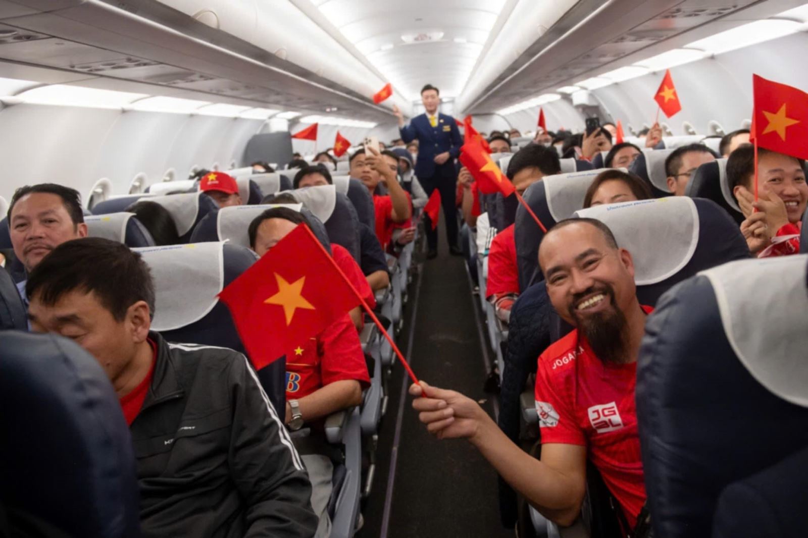 Các cổ động viên lên đường trên các chuyến bay charter cổ vũ đội tuyển Việt Nam.
