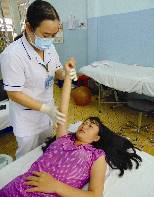 Tý tập vật lý trị liệu tại Bệnh viện Phục hồi chức năng tỉnh Tây Ninh.