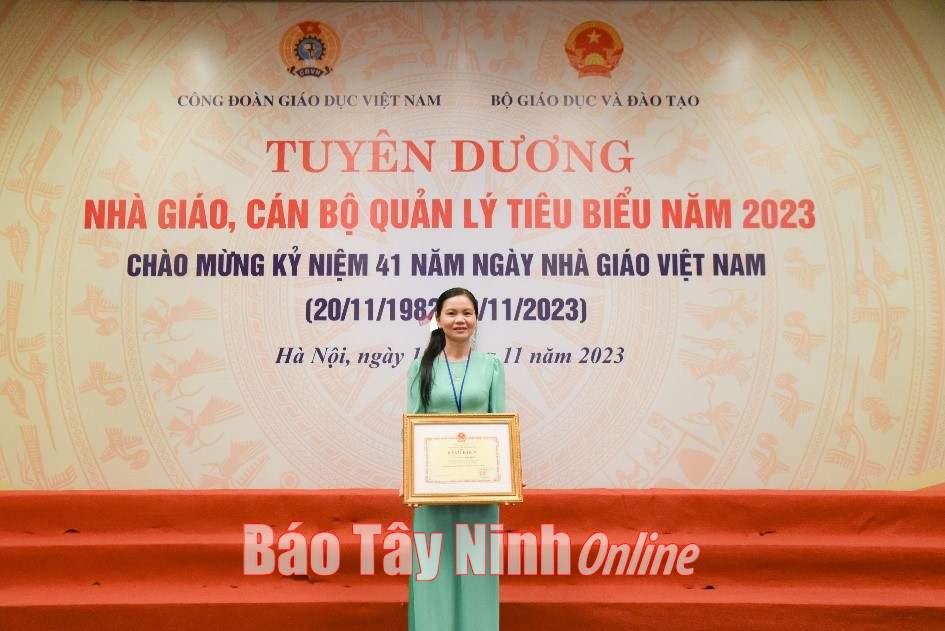 Ngày 19.11 vừa qua, tại Thủ đô Hà Nội đã diễn ra lễ tuyên dương nhà giáo, cán bộ quản lý tiêu biểu năm 2023. Cô Phan Thị Thu Thuý- Hiệu trưởng Trường tiểu học Phước Ninh là một trong 200 nhà giáo, cán bộ quản lý tiêu biểu cả nước được vinh danh nhận bằng khen của Bộ Giáo dục và Đào tạo