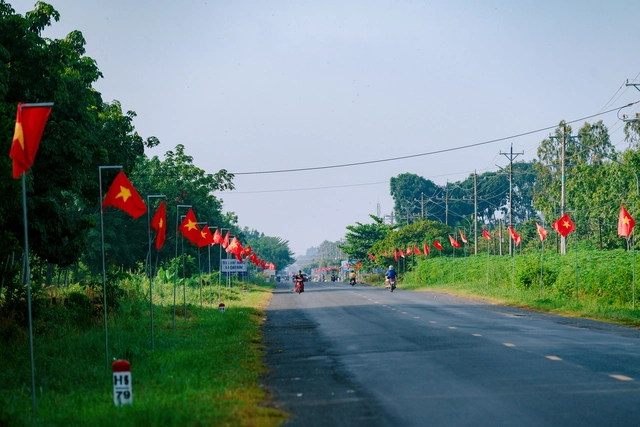 Cờ Tổ quốc rực rỡ trên tuyến đường dẫn vào Di tích lịch sử Căn cứ Trung ương Cục miền Nam.