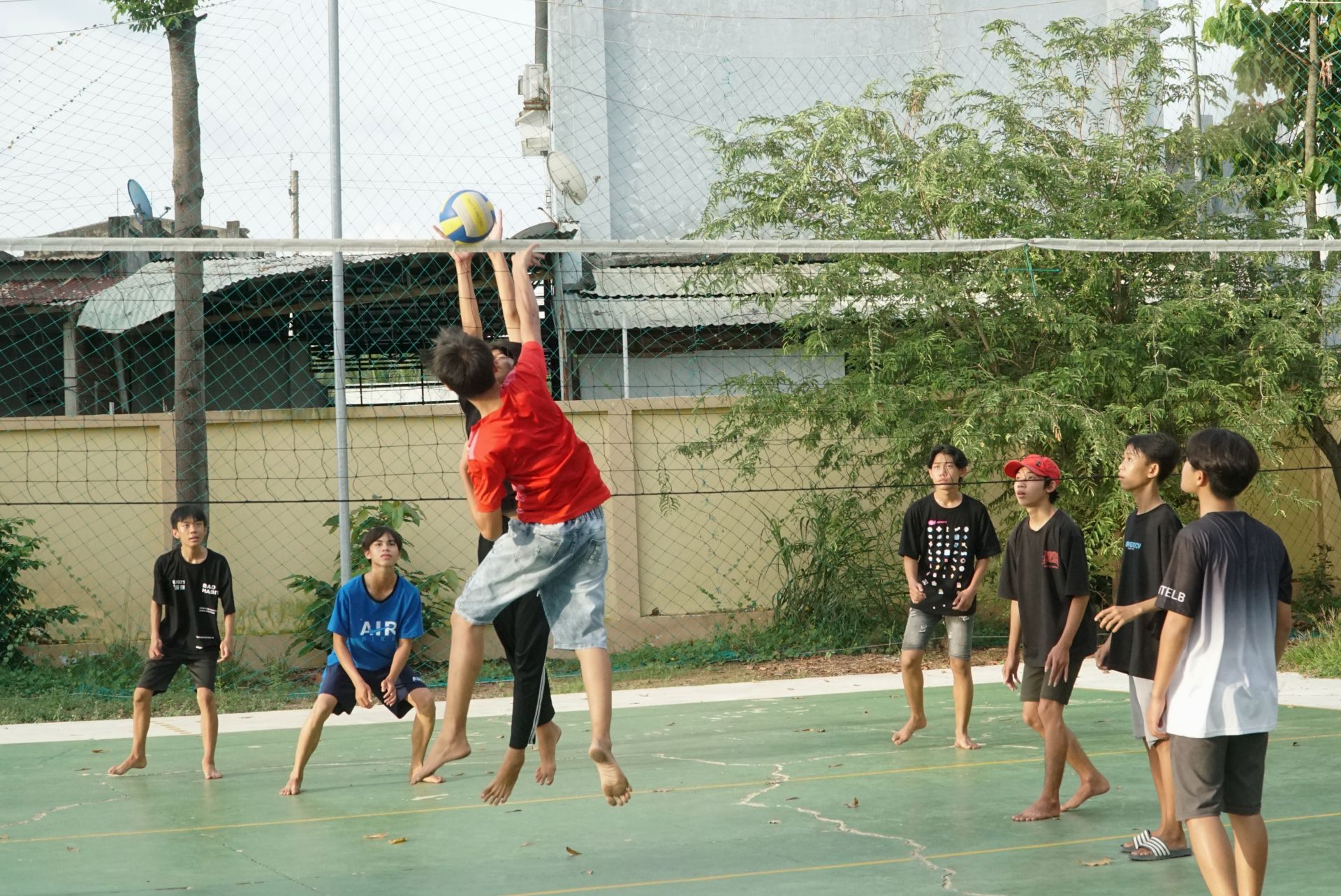 “Trước đây ở xã chưa có sân bóng chuyền, em chỉ biết ở nhà chơi với mấy anh em hay rủ nhau đi câu cá”- Hùng cho biết. Cạnh sân bóng chuyền là sân bóng đá mini có hàng chục học sinh, sinh viên đang được anh Bùi Thanh An hướng dẫn kỹ thuật đá bóng. Nguyễn Tân Phú- sinh viên Trường cao đẳng Nghề Tây Ninh nói: “Từ hôm nghỉ hè, chiều nào em cũng đến đây học bóng đá. Được chơi bóng cùng bạn bè trong xóm, em rất vui, tinh thần thoải mái”.