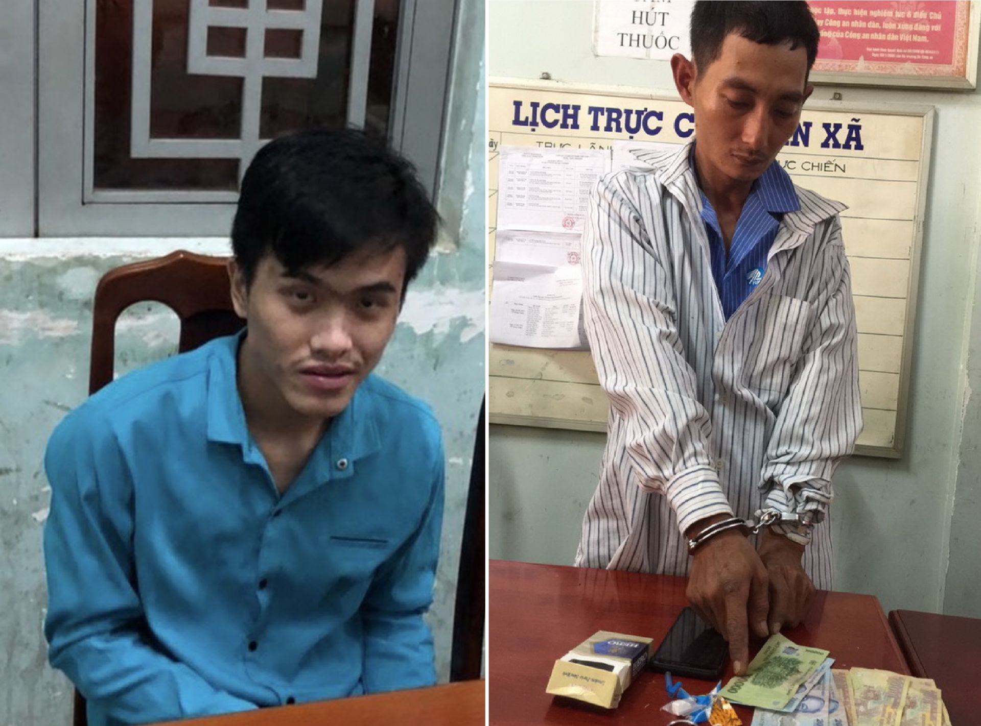 Đối tượng Lê Hoàng Phát và Dư Tuấn Tú cùng tang vật.