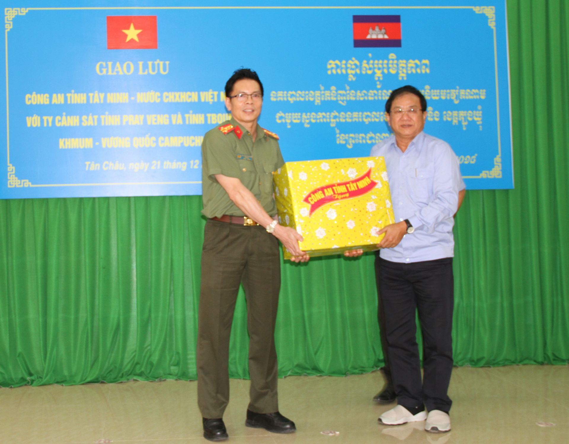 Ngày 21.12, tại huyện Tân Châu, Công an tỉnh Tây Ninh tổ chức gặp mặt, giao lưu với Ty Cảnh sát hai tỉnh Tboung Khmum và Pray Veng, Vương quốc Campuchia.