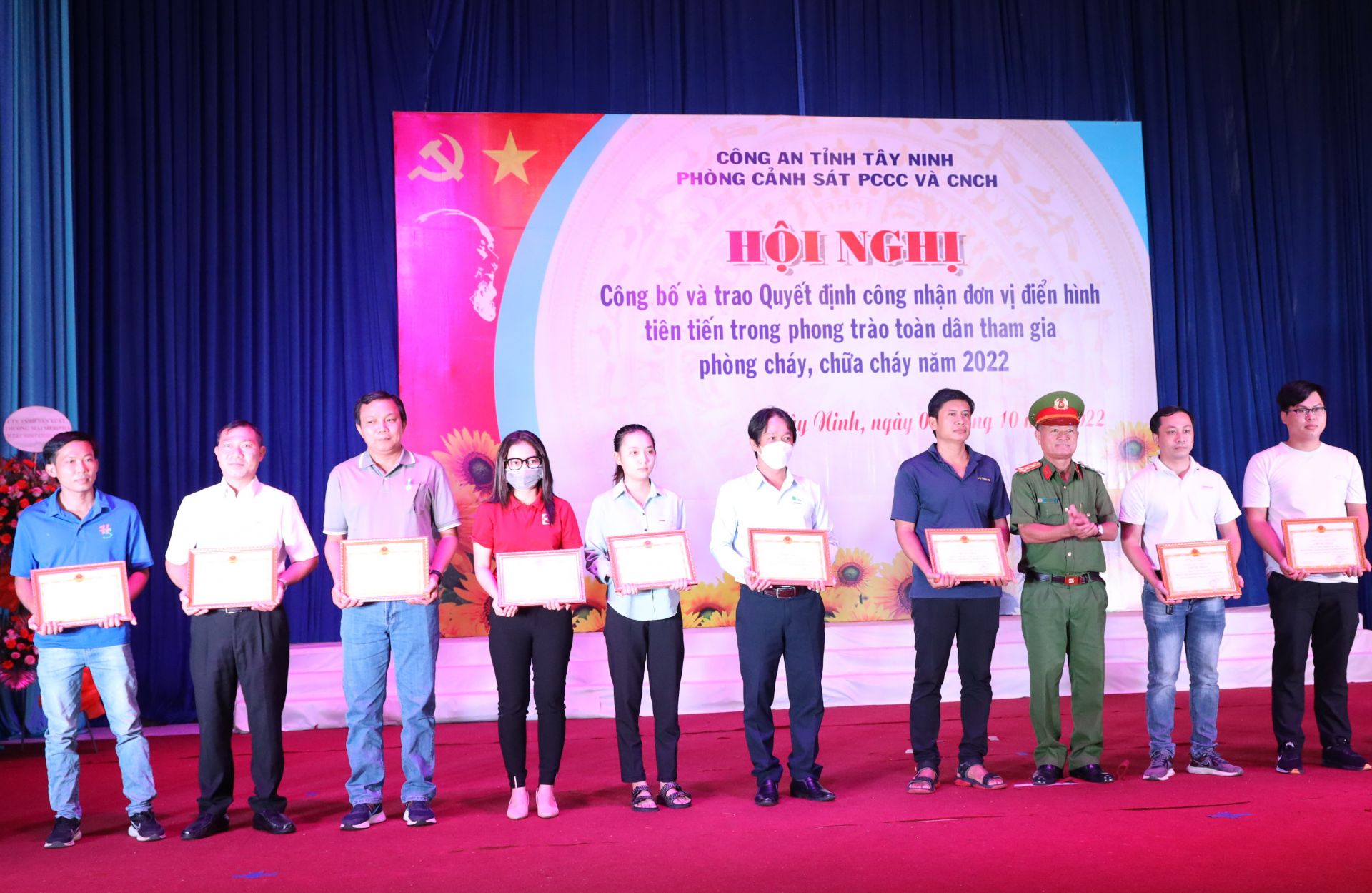 Tại hội nghị, nhân dịp kỷ niệm Ngày Toàn dân PCCC 4.10, Công an tỉnh trao quyết định công nhận cho đại diện 123 đơn vị trên địa bàn tỉnh đạt đơn vị điển hình tiên tiến, các đơn vị còn lại sẽ được tổ chức trao tại Công an các huyện, thị xã, thành phố trong tỉnh.