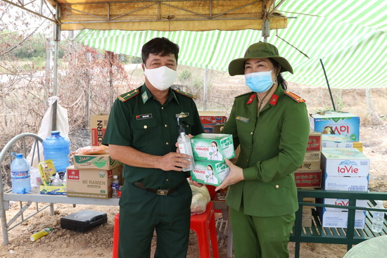 Hội phụ nữ Công an tỉnh thăm, động viên và tặng quà cho lực lượng đang làm nhiệm vụ tại một chốt chặn kiểm dịch phòng chống dịch bệnh Covid–19.