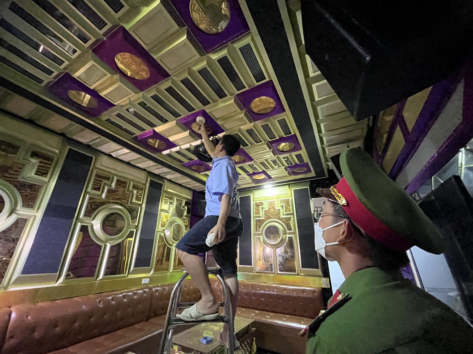 Ngay khi có chỉ đạo của Giám đốc Công an tỉnh về mở đợt tổng kiểm tra toàn diện các cơ sở kinh doanh dịch vụ karaoke, cơ sở massage, cho thuê lưu trú, tối 19.9, Phòng Cảnh sát quản lý hành chính về trật tự xã hội phối hợp với Phòng Cảnh sát phòng cháy chữa cháy và cứu nạn cứu hộ, Công an tỉnh cùng các ngành liên quan ra quân kiểm tra các cơ sở kinh doanh dịch vụ karaoke trên địa bàn.
