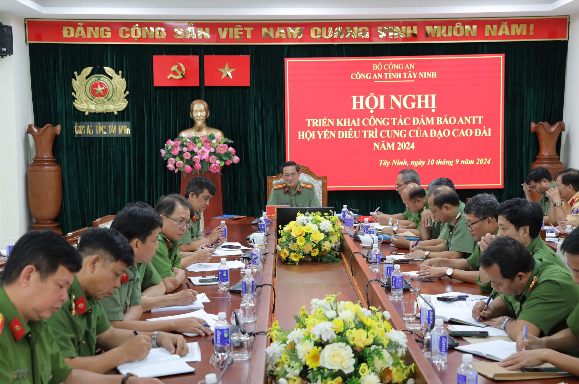 Sáng 10.9, Công an Tây Ninh tổ chức hội nghị triển khai kế hoạch bảo đảm an ninh trật tự Đại lễ Hội yến Diêu Trì cung trong tôn giáo Cao Đài Tây Ninh. Đại tá Nguyễn Văn Trãi- Giám đốc Công an tỉnh chủ trì hội nghị.