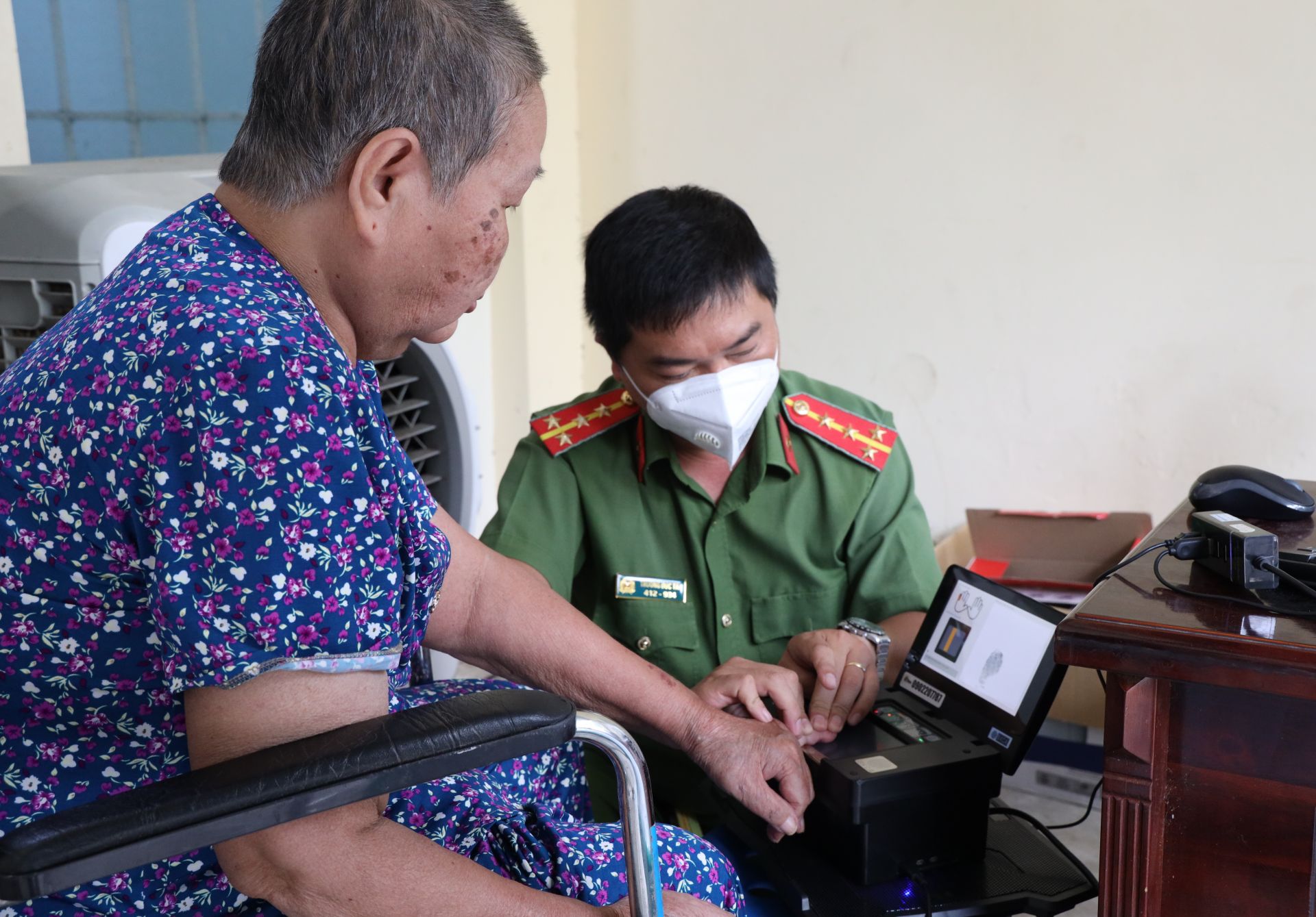 Cán bộ Công an Thành phố làm CCCD cho người già. Ảnh: Hà Thuỷ