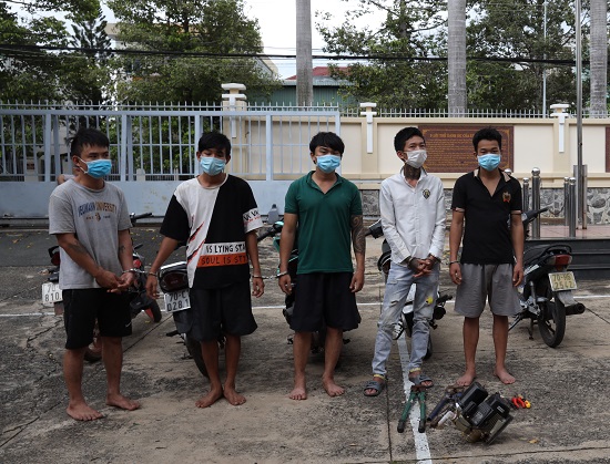 Khám xét nơi ở của các đối tượng công an thu giữ 6 xe mô tô là tang vật các vụ trộm cắp, 1 tủ lạnh, 1 đồng hồ quả lắc cổ, 2 cây dao tự chế, 2 cây kiềm cộng lực, 1 cây đoản phá khóa xe, 1 bình xịt hơi cay, 4 điện thoại di động, 13.200.000 đồng, 100 USD và nhiều tang vật khác.