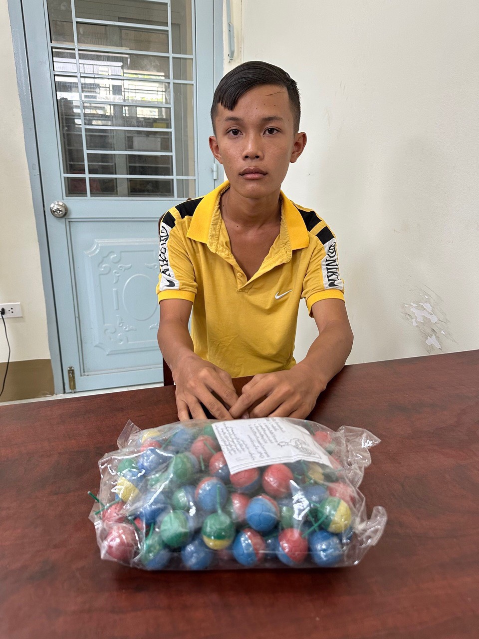Vào lúc 13 giờ, ngày 21.1, Công an xã Mỏ Công kiểm tra, phát hiện các đối tượng Võ Hoàng Anh (sinh ngày 27.9.2008) và Nguyễn Võ Gia Bảo (sinh ngày 12.3.2008), cùng ngụ ấp Gò Đá, xã Mỏ Công đang cất giữ 1 bịch pháo banh, số lượng 88 viên, trọng lượng 400g.