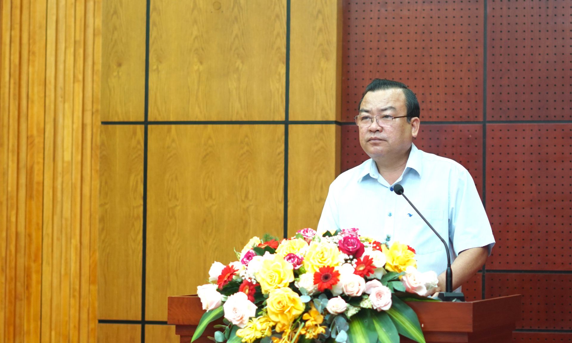 Phó Bí thư Thường trực Tỉnh uỷ Phạm Hùng Thái báo cáo tóm tắt kết quả tự kiểm tra của Ban Thường vụ Tỉnh uỷ Tây Ninh.