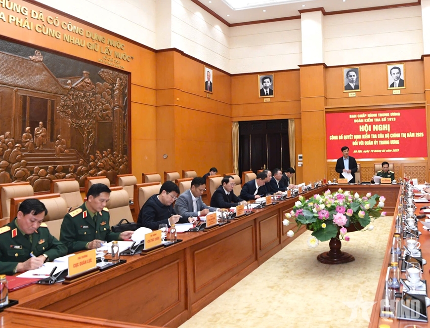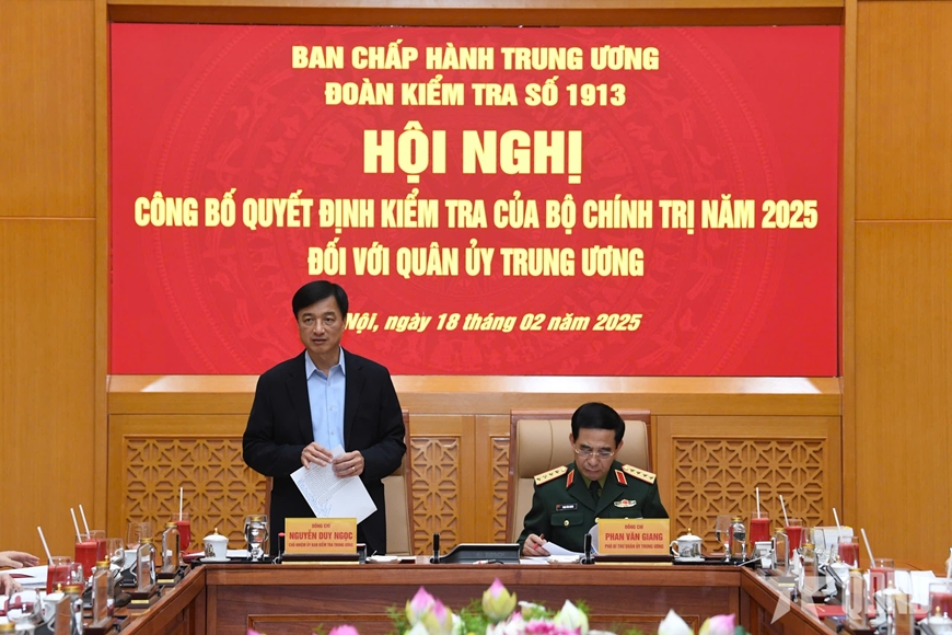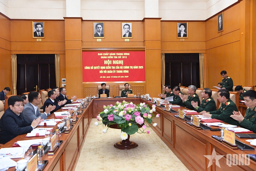 Chiều 18-2, tại Hà Nội, đoàn kiểm tra số 1913 của Bộ Chính trị tổ chức Hội nghị công bố Quyết định kiểm tra của Bộ Chính trị năm 2025 đối với Quân ủy Trung ương.