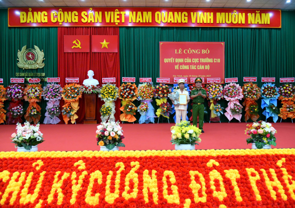 Sáng 18/10, tại Trại giam Cây Cầy (đóng trên địa bàn xã Thạnh Bình, tỉnh Tây Ninh), Cục C10, Bộ Công an tổ chức lễ công bố quyết định về công tác cán bộ. Thiếu tướng Nguyễn Việt Hùng - Ủy viên Ban Thường vụ Đảng ủy, Phó Cục trưởng Cục C10 dự và chủ trì buổi lễ.