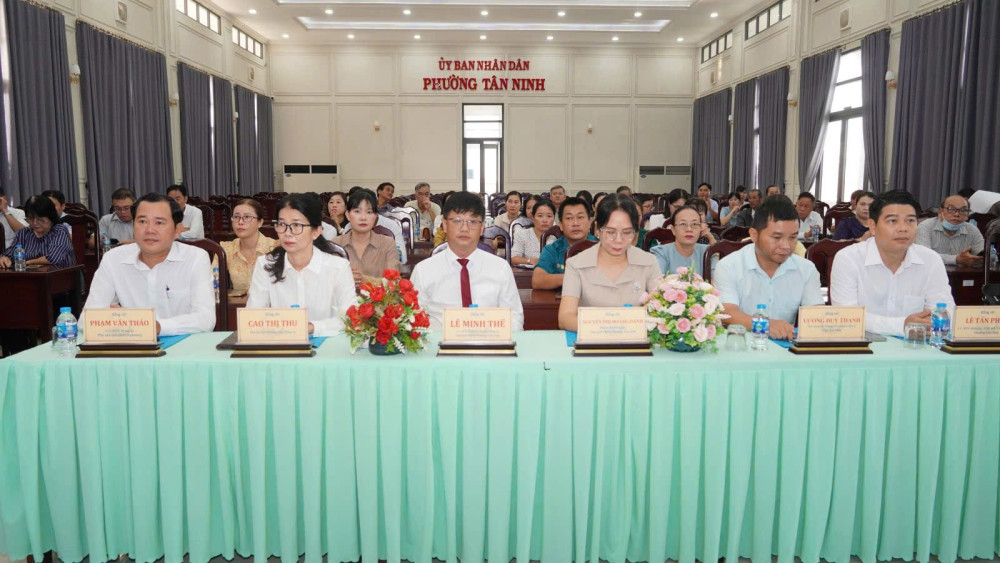 Đến dự có Ủy viên Ban Thường vụ Tỉnh ủy, Bí thư Đảng ủy, Chủ tịch HĐND phường Tân Ninh Lê Minh Thế; Phó Giám đốc Trung tâm Chuyển đổi số tỉnh Tây Ninh Vương Duy Thanh; Phó Bí thư Thường trực Đảng ủy phường Cao Thị Thu; Chủ tịch UBND phường Nguyễn Thị Hoàng Oanh; Phó Chủ tịch HĐND phường Phạm Văn Thảo; Chủ tịch UBMTTQ Việt Nam phường Lê Tấn Phát.