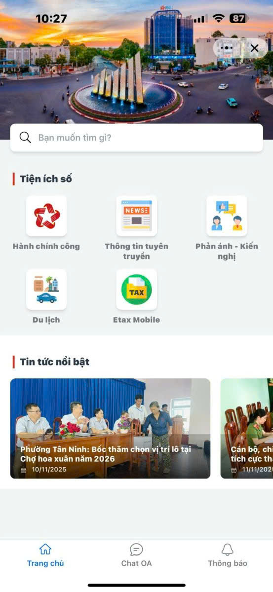 Sáng 13/11, Đảng ủy, HĐND, UBND, UBMTTQ Việt Nam phường Tân Ninh, tỉnh Tây Ninh, tổ chức Lễ công bố ứng dụng Zalo Mini app “Tân Ninh số”.