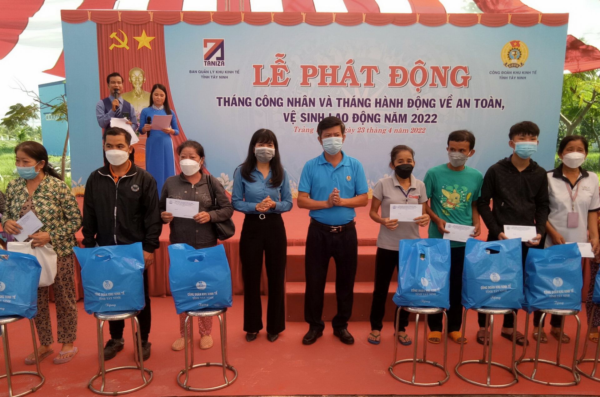 Dịp này, Công đoàn Khu kinh tế tỉnh trao tặng 100 phần quà, mỗi phần trị giá 1 triệu đồng cho đoàn viên, công nhân lao động có hoàn cảnh khó khăn, bị tai nạn lao động và ảnh hưởng dịch Covid-19; trao tặng 2 căn nhà “Mái ấm công đoàn” cho đoàn viên, công nhân lao động có hoàn cảnh khó khăn, mỗi căn trị giá 50 triệu đồng.