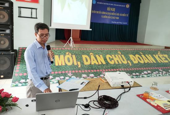 Ông Nguyễn Văn Nhanh – Phó Trưởng phòng Truyền thông Bảo hiểm xã hội tỉnh Tây Ninh tuyên truyền, phổ biến chính sách tại hội nghị.