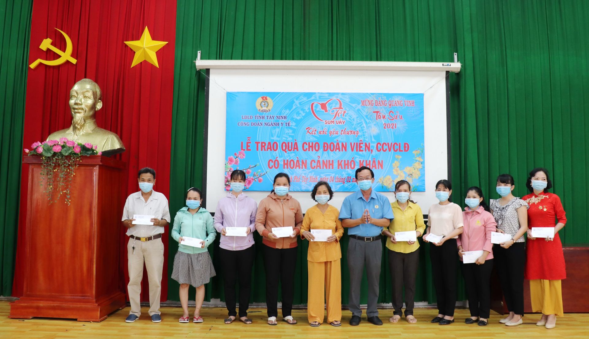 Hưởng ứng Chương trình “Tết sum vầy - Kết nối yêu thương”, với phương châm: “Tất cả mọi đoàn viên, người lao động đều có tết”, Công đoàn ngành Y tế tỉnh trao tặng 40 suất quà, mỗi suất quà trị giá 1.000.000 đồng cho đoàn viên, người lao động có hoàn cảnh khó khăn trong dịp Tết Nguyên đán Tân Sửu 2021.