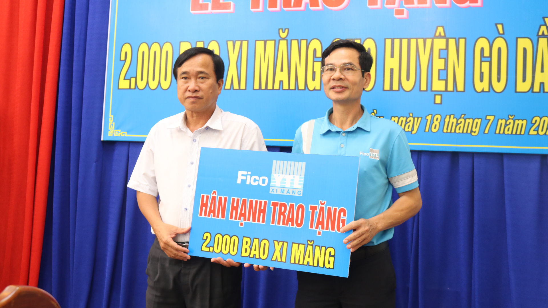 Tại buổi lễ, Công ty cổ phần Xi măng Fico Tây Ninh ký kết và trao bảng tượng trưng tặng 2.000 bao xi măng, trị giá hơn 150 triệu đồng cho UBND huyện Gò Dầu thực hiện các công trình giao thông nông thôn trên địa bàn huyện.