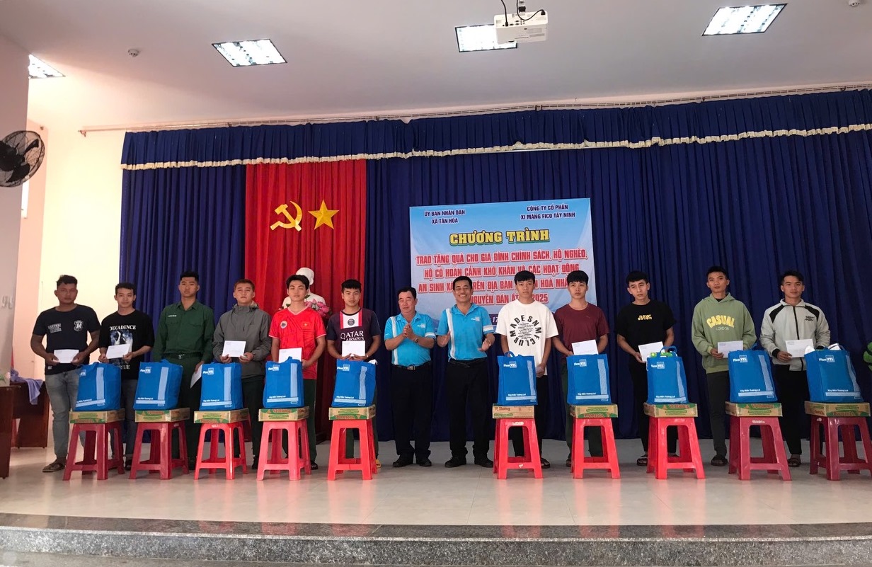 Được biết, năm 2025, Công ty cổ phần xi măng Fico Tây Ninh hỗ trợ an sinh xã hội, văn hoá thể dục thể thao cho xã Tân Hoà 150 triệu đồng.