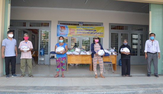 Tặng quà cho lực lượng tham gia phòng chống dịch và hộ dân khó khăn.