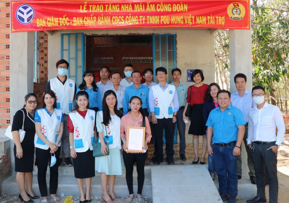 Sáng 06.1, Ban Giám đốc Công ty TNHH Pou Hung VN phối hợp cùng Ban Chấp hành công đoàn Công ty tổ chức trao tặng 2 căn nhà mái ấm công đoàn cho đoàn viên công đoàn Công ty có hoàn cảnh khó khăn về nhà ở.
