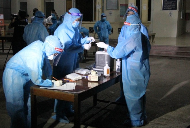 Lực lượng y bác sỹ xuyên đêm lấy mẫu xét nghiệm đối với các trường hợp là F1. (Nguồn: TTXVN)
