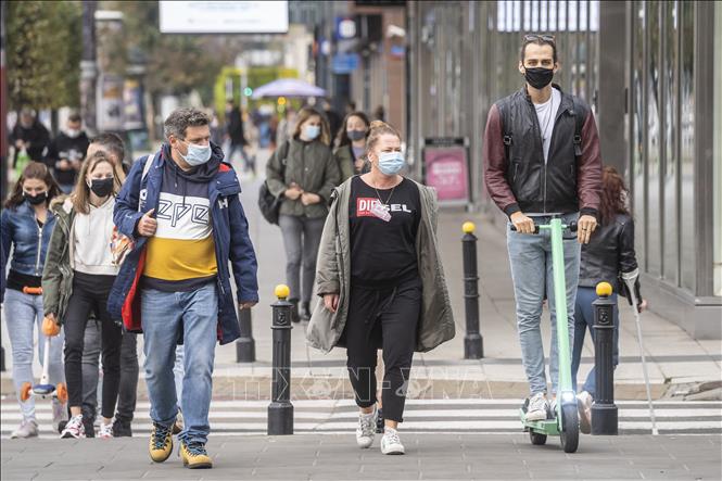 Người dân đeo khẩu trang phòng dịch COVID-19 tại Ba Lan ngày 10/10/2020. Ảnh: AFP/TTXVN