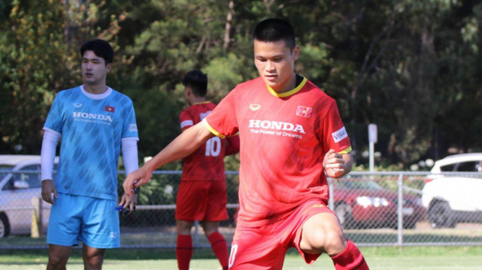 Tuấn Hải tập luyện cùng tuyển Việt Nam tại Australia. Ảnh VFF