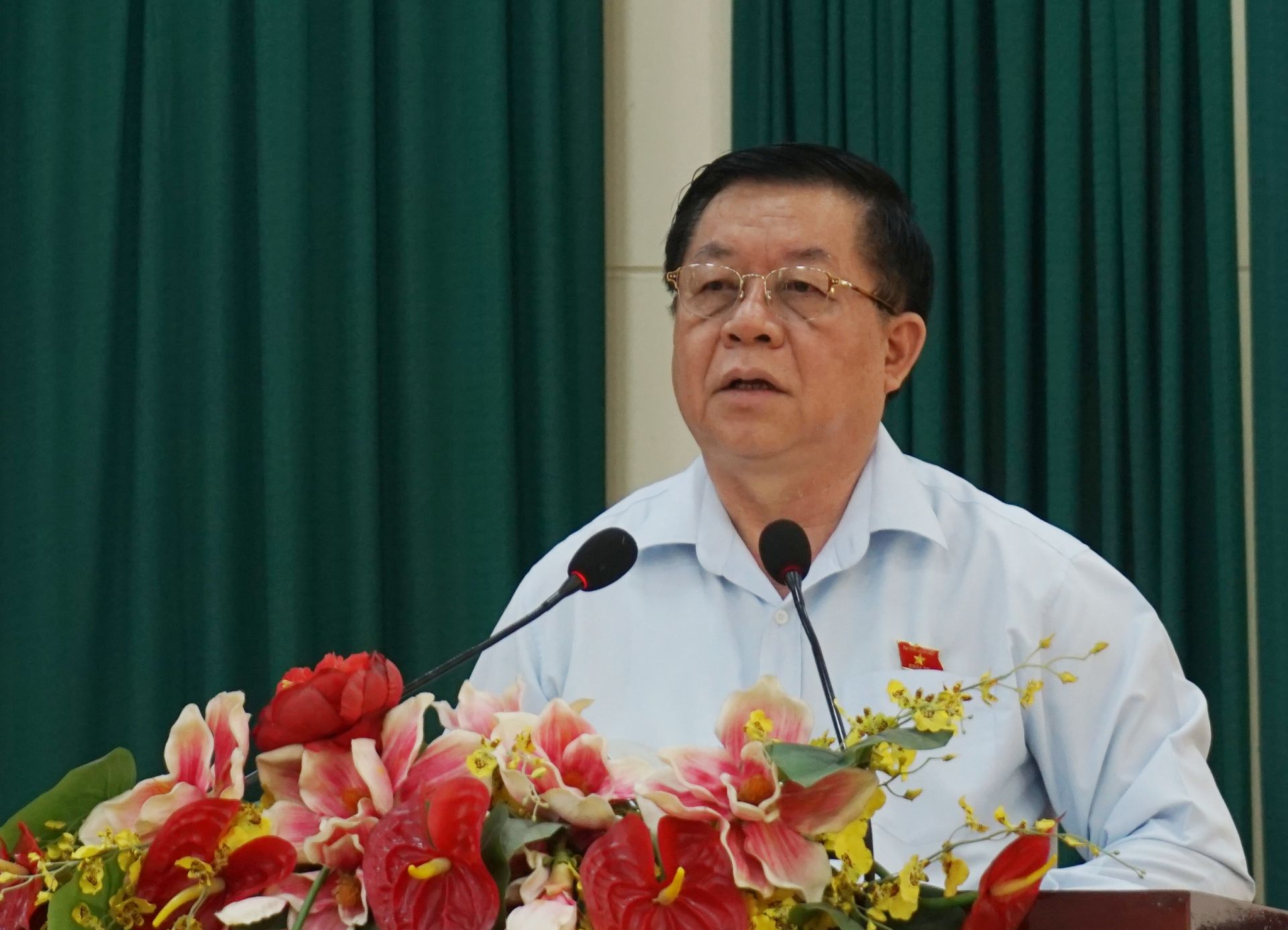 Đại biểu Quốc hội Nguyễn Trọng Nghĩa phát biểu tại buổi tiếp xúc cử tri sở, ngành tỉnh.